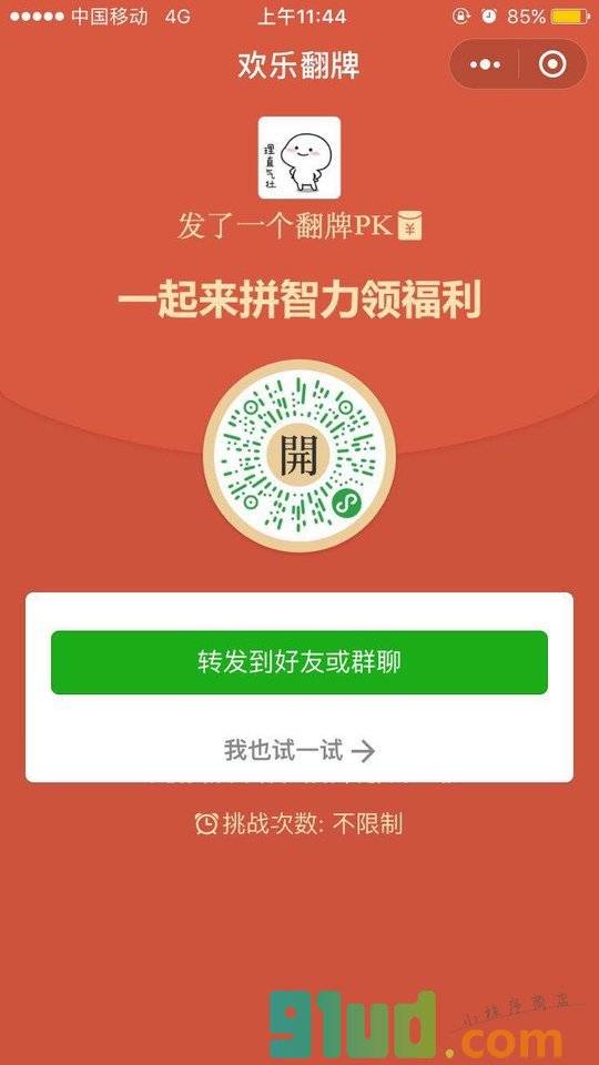 - 使用微信扫描页面上方二维码进入欢乐翻牌
