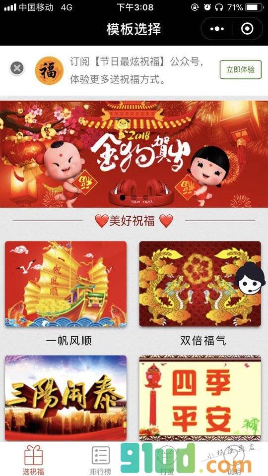 - 在微信中搜索“节日酷炫祝福”即可进入小程序