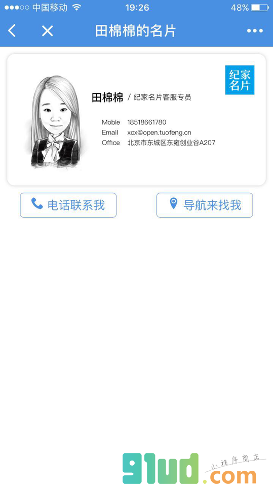 - 使用微信扫描页面上方二维码进入纪家名片