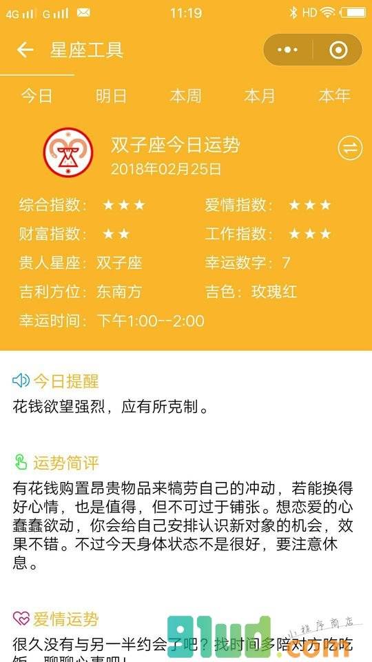 - 在微信中搜索“2177游戏”进入小程序后,搜索星座工具就可以找到。