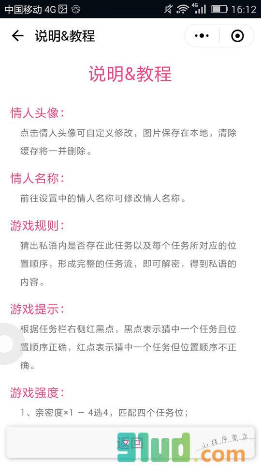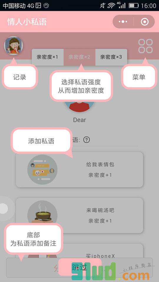 男朋友可以给爱人发甜言蜜语;女朋友可以考验爱人的智商,通过解密来让爱人做任务。
