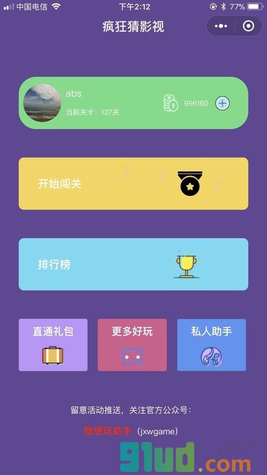 - 在微信中搜索“2177游戏”进入小程序后,搜索疯狂猜影视就可以找到。