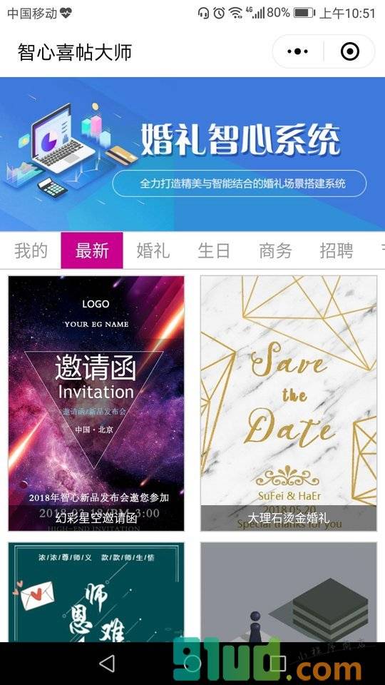 - 在微信中搜索“智心喜帖大师”即可进入小程序