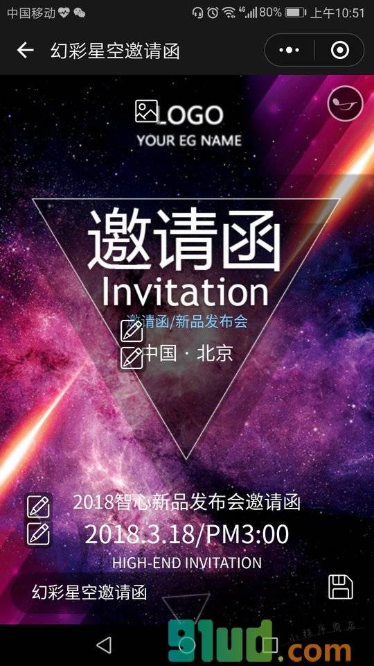 准新人用手机就可以免费制作自己的电子喜帖。可以修改智心提供模板上的文字、图片,添加地址导航,亲朋好友还可以留下祝福。 婚礼智心是致力于一站式解决婚礼行业所有问题的企业平台。优化和解决婚庆公司每一个环节的麻烦,旗下研发VR营销谈单系统、VR婚宴预定系统、智能化报价器、DIY设计系统、智心道具买卖商城、策划方案素材下载、婚礼人学习交流社区、定制设计、智心导客平台等产品。
