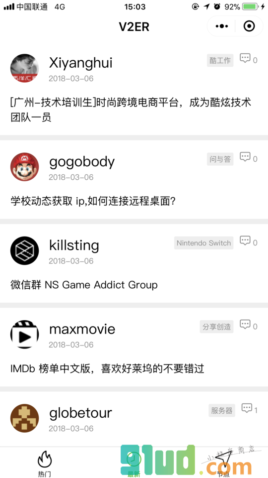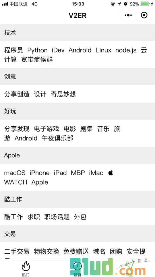 - 在微信中搜索“V2ER”即可进入小程序