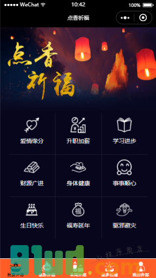 - 在微信中搜索“点香祈福”即可进入小程序