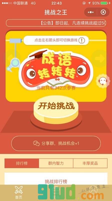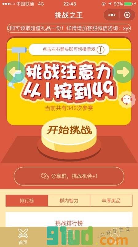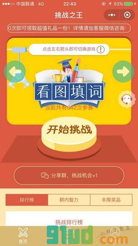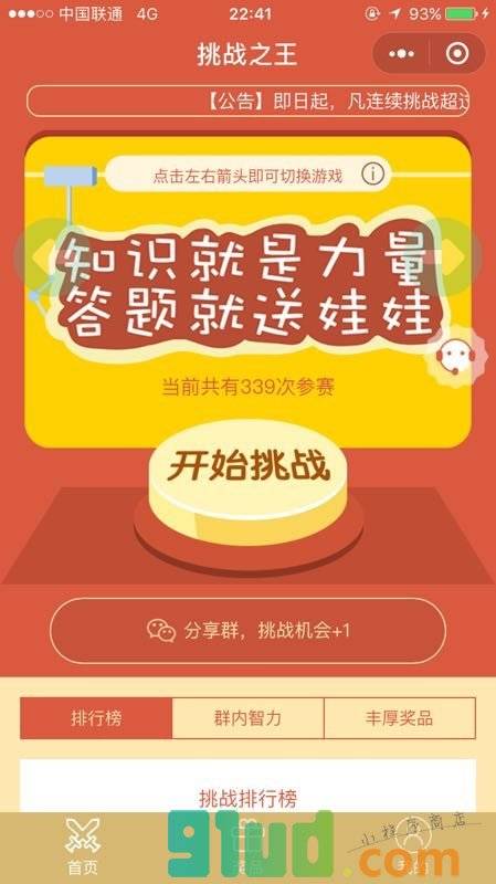- 在微信中搜索“2177游戏”进入小程序后,搜索挑战之王就可以找到。