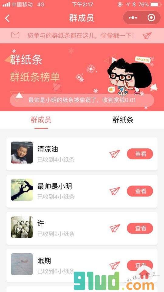 通过群纸条向心目中的那个TA说出你的心里话,重新感受学生时代的羞涩、紧张、刺激。