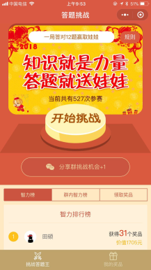 掌上答题微信小游戏使用方法:
