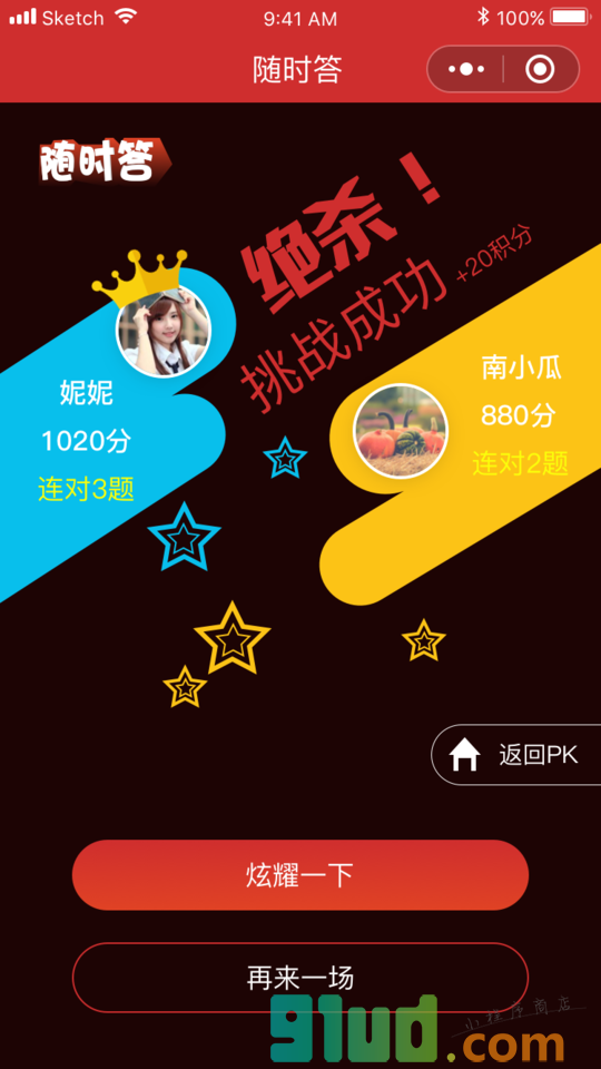 随时答-是一款答题游戏。发起挑战,每局比赛两人参与,共有五题,每题时间为10秒,答题越快越准得分越高,最终分数高者获胜!