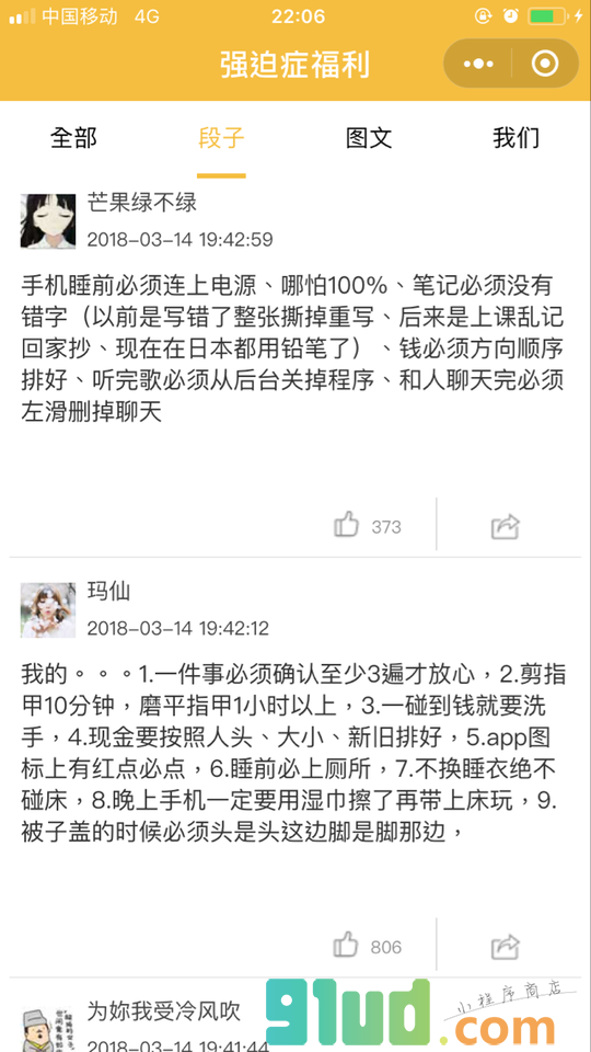- 在微信中搜索“强迫症福利”即可进入小程序