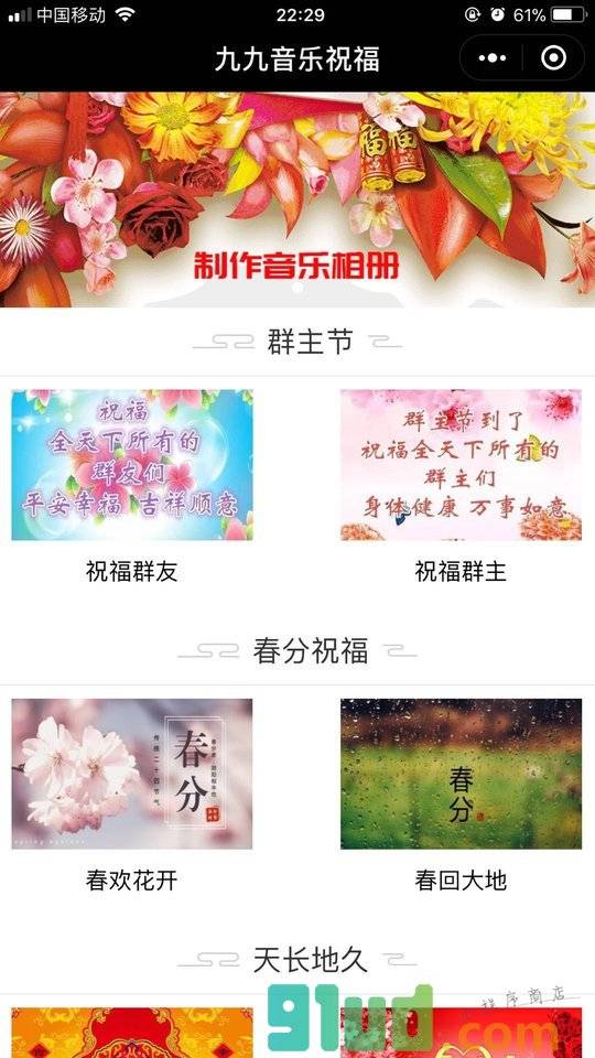 - 在微信中搜索“九九音乐祝福”即可进入小程序