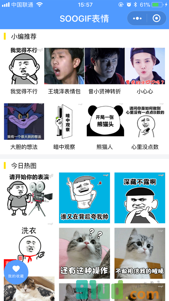 - 在微信中搜索“SOOGIF表情”即可进入小程序