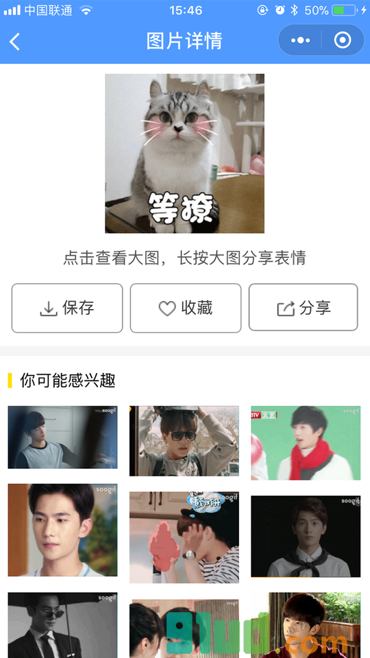 - 使用微信扫描页面上方二维码进入SOOGIF表情