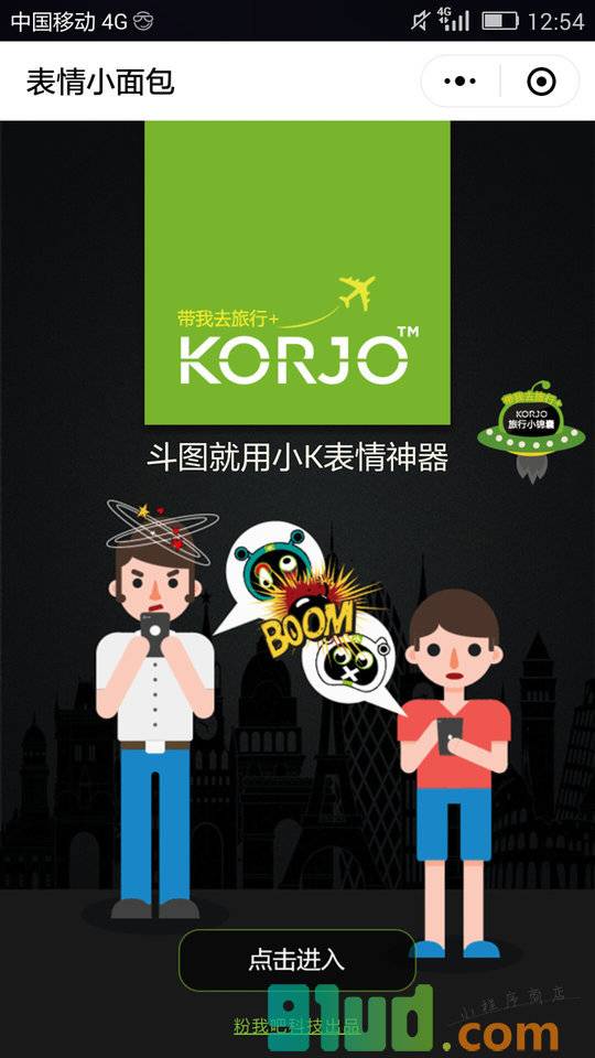 - 使用微信扫描页面上方二维码进入KORJO表情小面包