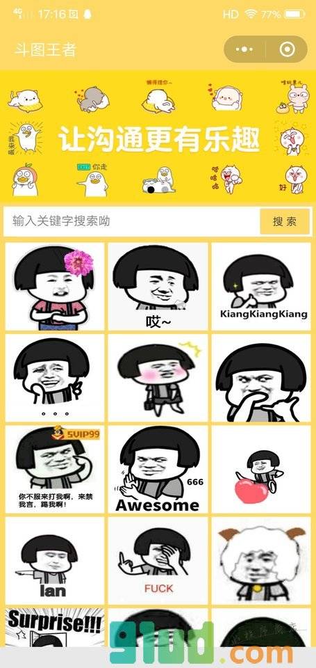 - 在微信中搜索“斗图王者”即可进入小程序