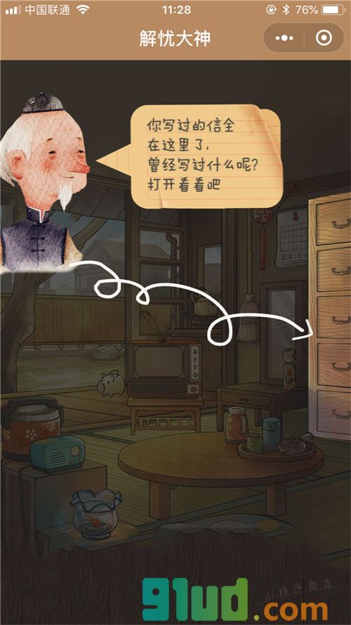 - 如果曾经开启过解忧大神,解忧大神会隐藏到「微信」的最上方,只要在微信首页下拉即可找到解忧大神小游戏图标。