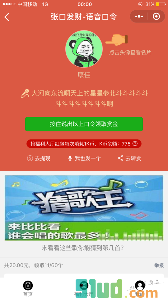 - 在微信中搜索“开口发财”即可进入小程序