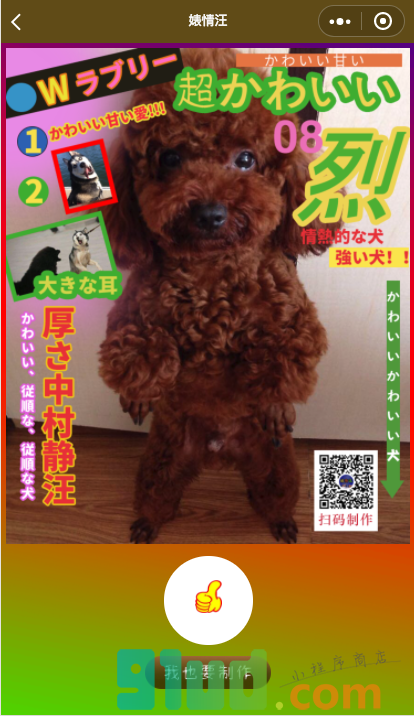 可上传狗狗照片,生成各种有趣贴图,好玩易用,模版多,主人可轻松上手,根据自己的需求为自己的狗狗生成好玩贴图吧。