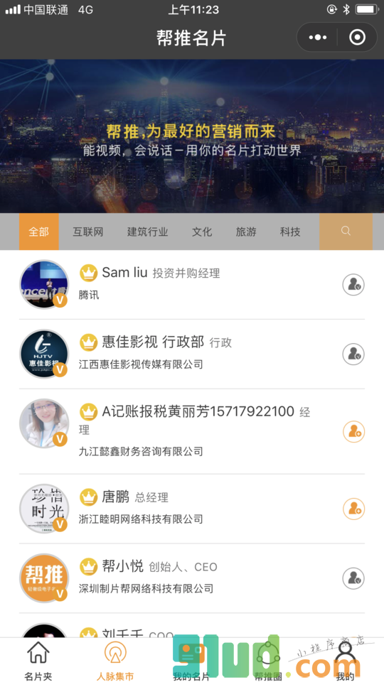 - 在微信中搜索“帮推名片”即可进入小程序