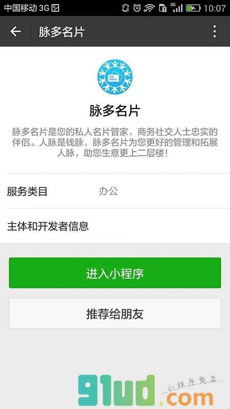 - 在微信中搜索“脉多名片”即可进入小程序