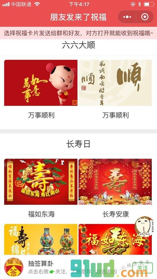 - 在微信中搜索“朋友发来了祝福”即可进入小程序