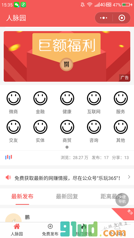 人脉园微信小游戏由人脉园团队开发,并于2018-06-22 14:14:24发布于小程序游戏盒子 2177.cn