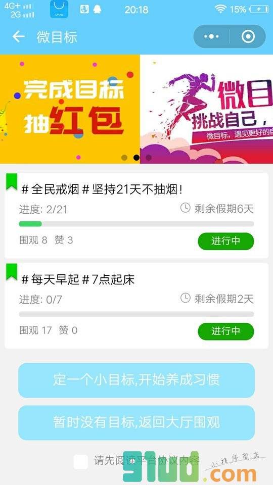 微目标是通过自律与他律的方式帮助用户养成习惯的小程序,可以发布挑战任务每天签到,快来制定一个目标,让你的好友监督你吧。