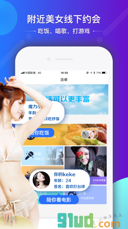 基于同城的美女速配交友,美女主播最多的1对1直播平台,美女主播陪你唱歌,陪你线下吃饭,看电影,打游戏;