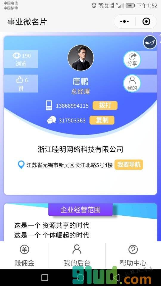 - 使用微信扫描页面上方二维码进入我的超级名片
