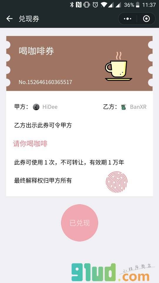 情侣、朋友间维护增进感情的神器。口头约定?许下承诺?打个欠条?不如发一张兑现券。以后再有人说下次请你吃饭,麻烦把这个小程序丢给 Ta 。