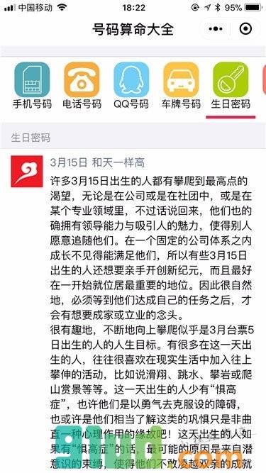 - 在微信中搜索“号码吉凶查询”即可进入小程序