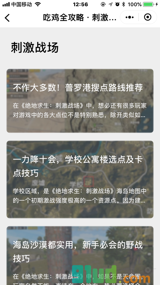 - 在微信中搜索“吃鸡全攻略”即可进入小程序