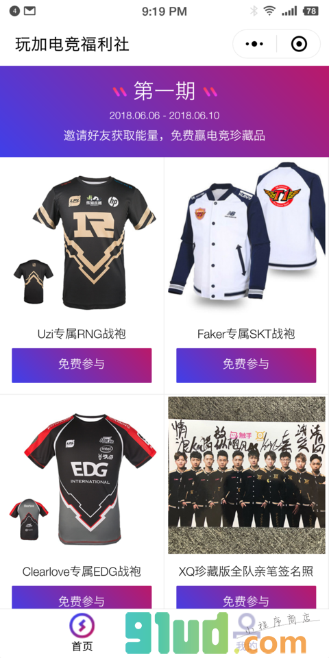 - 使用微信扫描页面上方二维码进入玩加电竞福利社