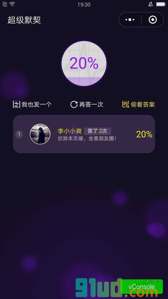 - 在微信中搜索“超级默契”即可进入小程序