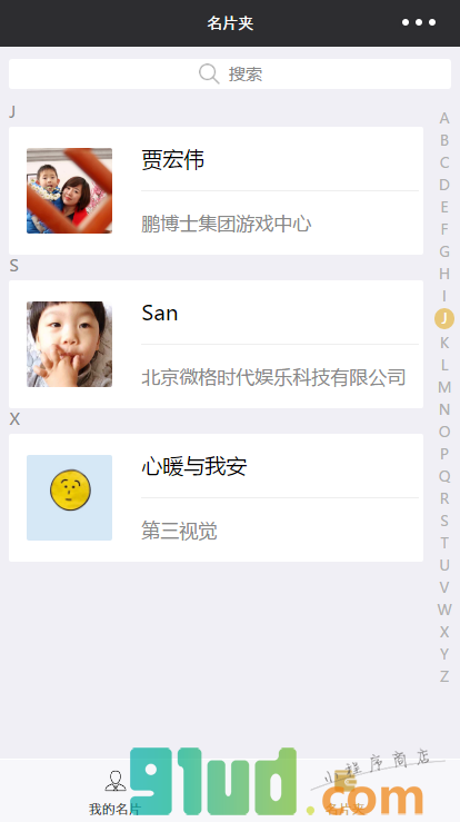- 在微信中搜索“名片卡”即可进入小程序