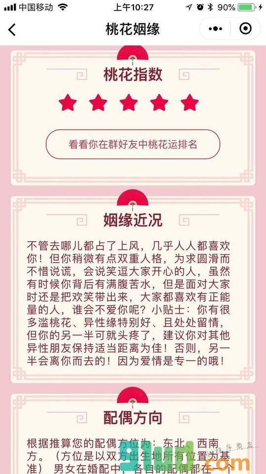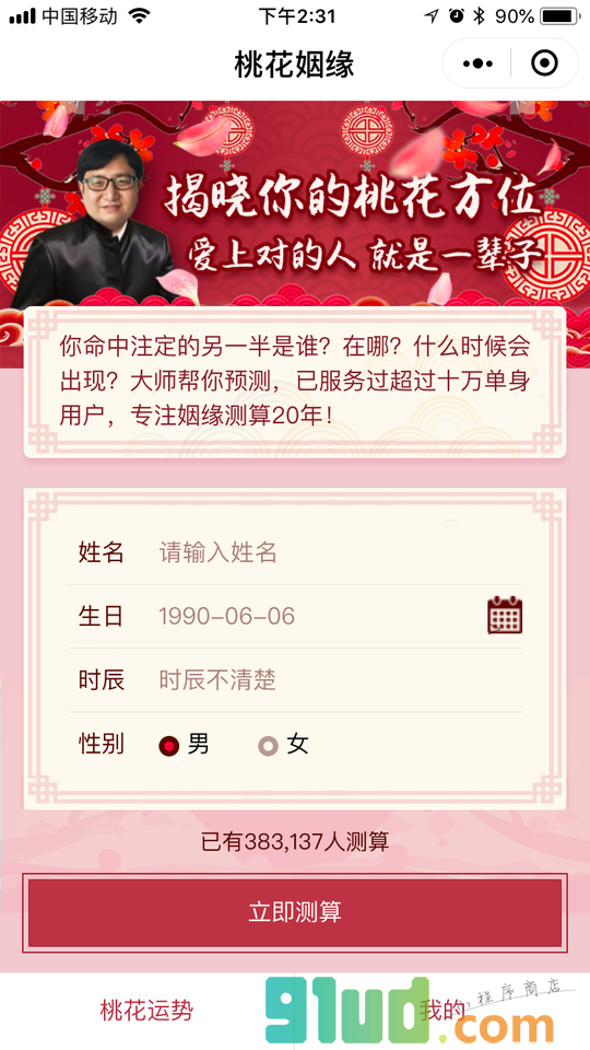 - 在微信中搜索“桃花姻缘”即可进入小程序
