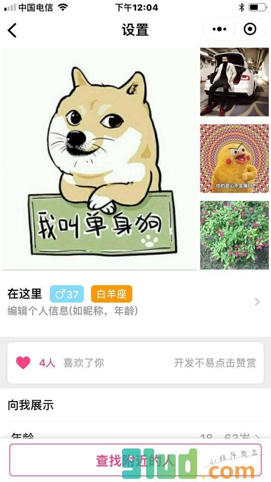 - 在微信中搜索“单身狗在行动”即可进入小程序