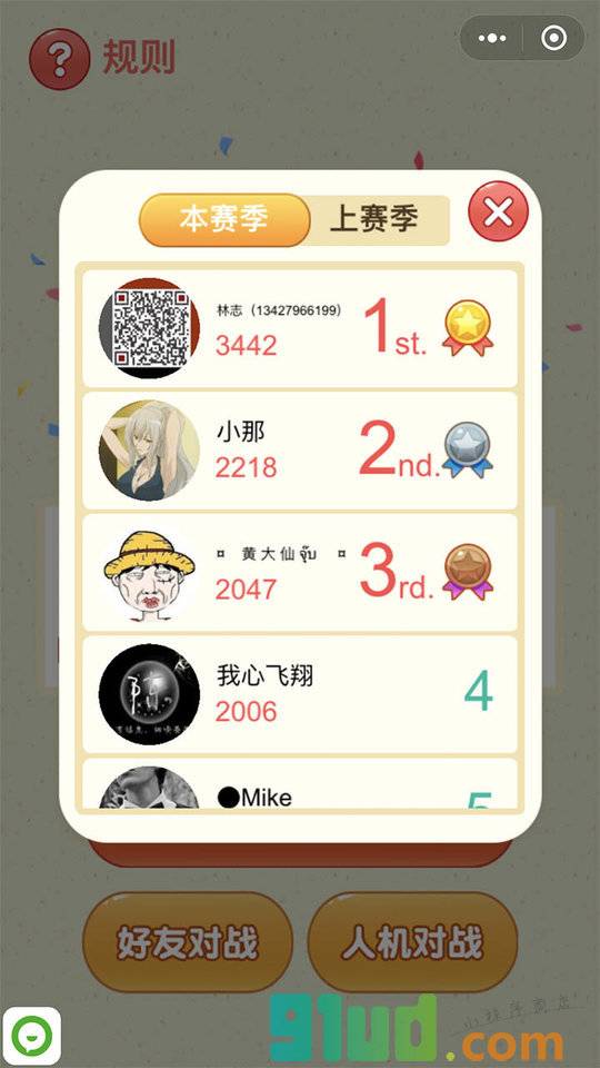 - 使用微信扫描页面上方二维码进入萌萌五子棋