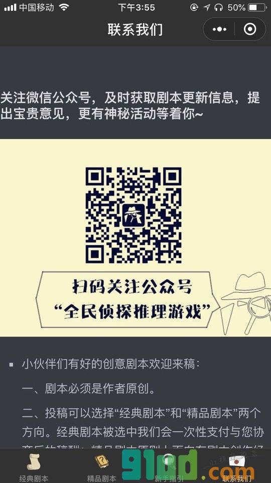 - 使用微信扫描页面上方二维码进入全民侦探推理游戏