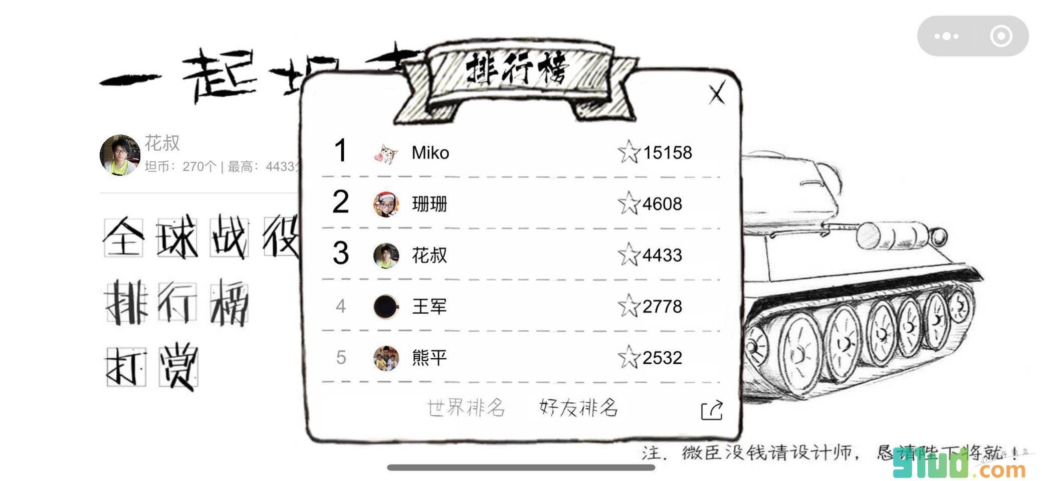- 在微信中搜索“坦克小战”即可进入小程序