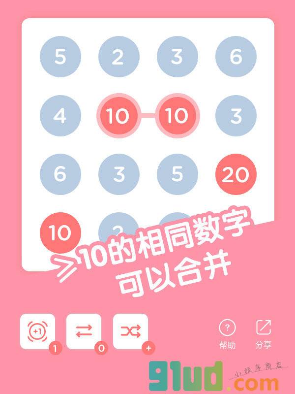 合十,一上手就根本停不下来的益智游戏!手指轻划连接相邻数字相加得到10,同时可以合并≥10的相同数字来获得更大的数字。