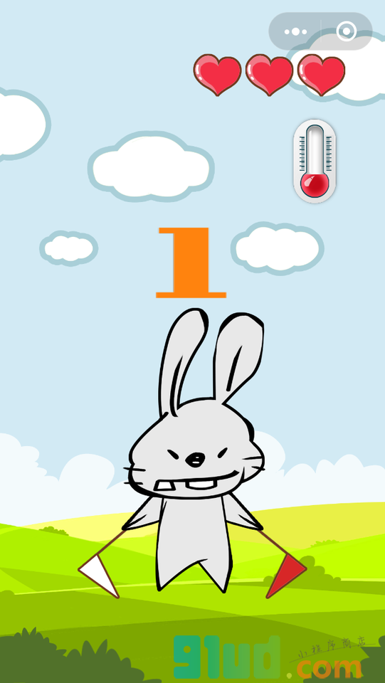 大家好,我叫神经兔,流氓兔家族的新成员,请来玩我哟 我会在左面或者右面举起旗子哦 你要及时的点击对应的位置阻止我哦