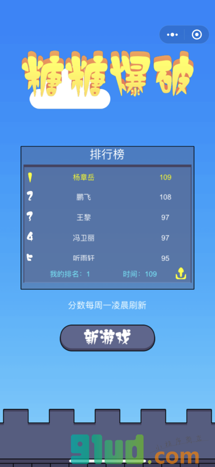 - 在微信中搜索“糖糖爆破”即可进入小程序