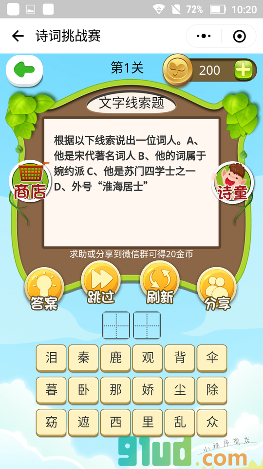 诗词挑战赛游戏,您是下一个诗王吗?诗词娱乐小游戏,比拼谁的知识答题多多,最强王者!~开阔思维