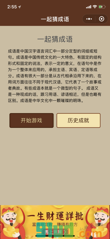 - 在微信中搜索“全民疯狂猜成语”即可进入小程序