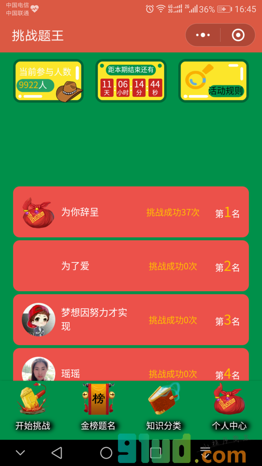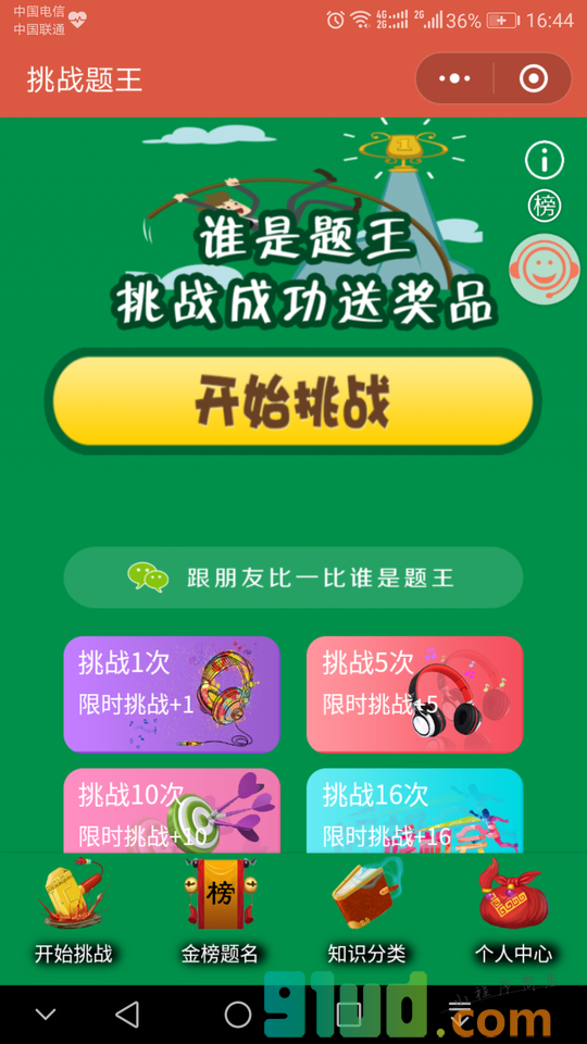 - 使用微信扫描页面上方二维码进入挑战题王