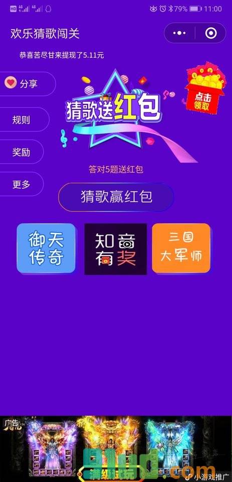 - 使用微信扫描页面上方二维码进入欢乐猜歌闯关