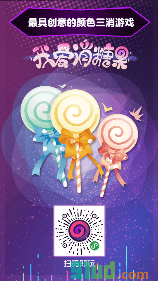 - 使用微信扫描页面上方二维码进入我爱消糖果