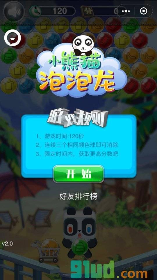 - 在微信中搜索“小熊猫泡泡龙”即可进入小程序